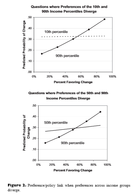 Using an original data set of almost two thousand survey questions on proposed policy changes between 1981 and 2002, I find a moderately strong relationship between what the public wants and what the government does, albeit with a strong bias toward the status quo. But I also find that when Americans with different in come levels differ in their policy preferences, actual policy outcomes strongly reflect the preferences of the most affluent but bear virtually no relationship to the preferences of poor or middle-income Americans. The vast discrepancy I find in government responsiveness to citizens with different incomes stands in stark contrast to the ideal of political equality that Americans hold dear. Although perfect political equality is an unrealistic goal, representational biases of this magnitude call into question the very democratic character of our society.