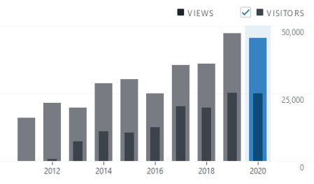 Note that page views do not include visits by logged-in contributors – the wordpress system does not count those visits.