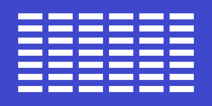 Every movement needs symbols, and the sortition movement is notably short on them. I’ve taken the liberty of putting together a couple! The design is a stylised version of the kleroterion – a 6×7 grid of 42 horizontal bars (because sortition is the answer!) The bars are 2×8 units, separated by gaps of 2 units from each other; the top and bottom borders are 9 units high, and the right and left borders are 12 units across, giving the flag as a whole a 2:1 aspect ratio.