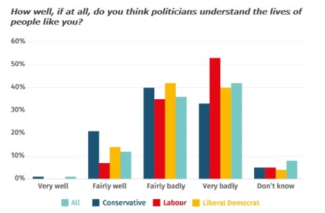 Contrary to the supposed polarization, there exist a wide consensus regarding the oligarchical nature of the system. UK citizens across the political spectrum see the voters as having little influence compared to party donors, business, media and lobbyists. There is also a widespread agreement that politicians “do not understand the lives” of typical people and that “democracy in Britain does not serve [their] interests”.