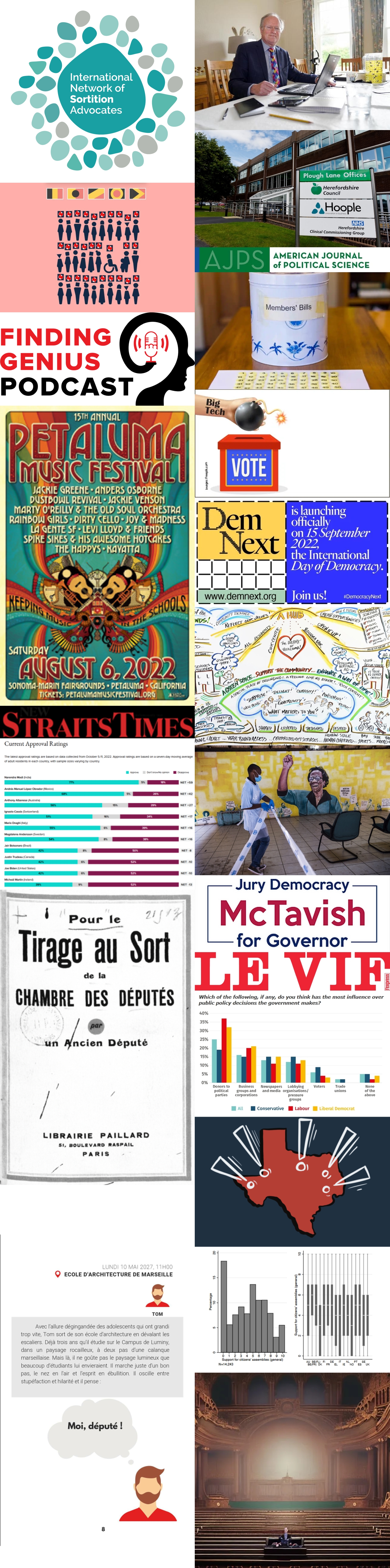 But while popular support for sortition is strong, and while (well justified) concern in elite circles about the declining popularity of the elections-based system persists, it seems to me that 2022 has continued a down-trend in interest in sortition in elite circles, a down-trend that indicates a recovery from the heights of establishment hysteria about the “Crisis of Democracy” following Brexit, the election of Donald Trump and the Gilets Jaunes protest in France. Academics have continued publishing papers and opinions on the pros and cons of sortition (unfortunately often rehashing very well hashed material) but applications of sortition have been fading in prominence since the zenith of the French Citizen Convention for the Climate, and discussion of the idea in mass media has receded as well.